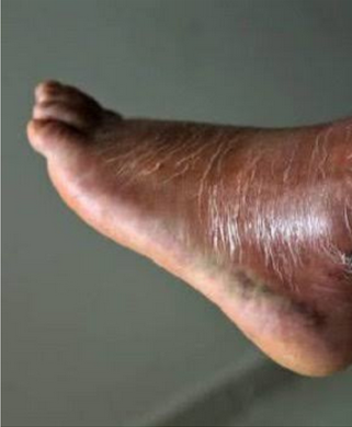 - ملاحظة تغير لون جلد القدم.